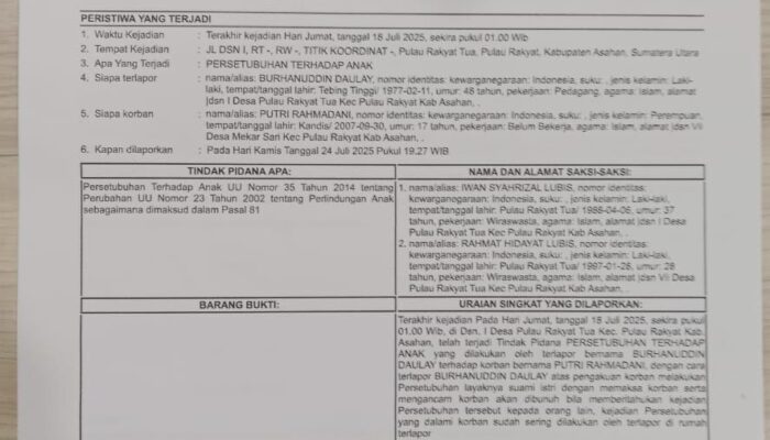 Kapolres Asahan, AKBP Revi Nurvelani, SH, S.I.K., M.H., menegaskan komitmen Polres Asahan dalam melindungi anak-anak dari segala bentuk kejahatan. “Kami akan memproses kasus ini sesuai hukum yang berlaku dan memberikan perlindungan serta keadilan bagi korban,” ujarnya.
