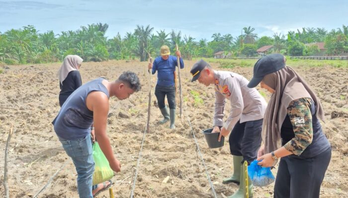 Asahan- Kapolsek Pulau Raja, IPTU DR. Anwar Sanusi S, SH, MH, memimpin kegiatan penanaman jagung serentak kuartal III dan penanaman jagung 1 ha 1 desa di Dusun I Desa Pulau Rakyat Tua, Kecamatan Pulau Rakyat, Kabupaten Asahan, pada Minggu, 3 Agustus 2025.